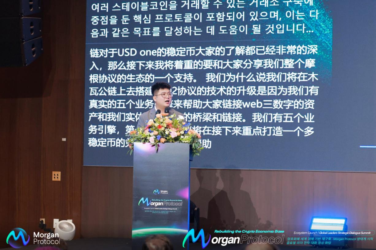 Although unable to attend the Jeju summit in person, Mr. Mike, CEO of Morgan Protocol, conveyed his strong support for the launch event through a video address. He explained that he has recently been traveling extensively to advance new commercial partnerships and strategic resource integrations worldwide, and thus regretted missing the on-site gathering. He emphasized, however, that Morgan attaches great importance to this summit in Asia—particularly in the Korean market. In his message, he shared Morgan’s latest progress, core development priorities, and strategic focus for Asia, offering attendees a clear and comprehensive understanding of the brand’s roadmap.